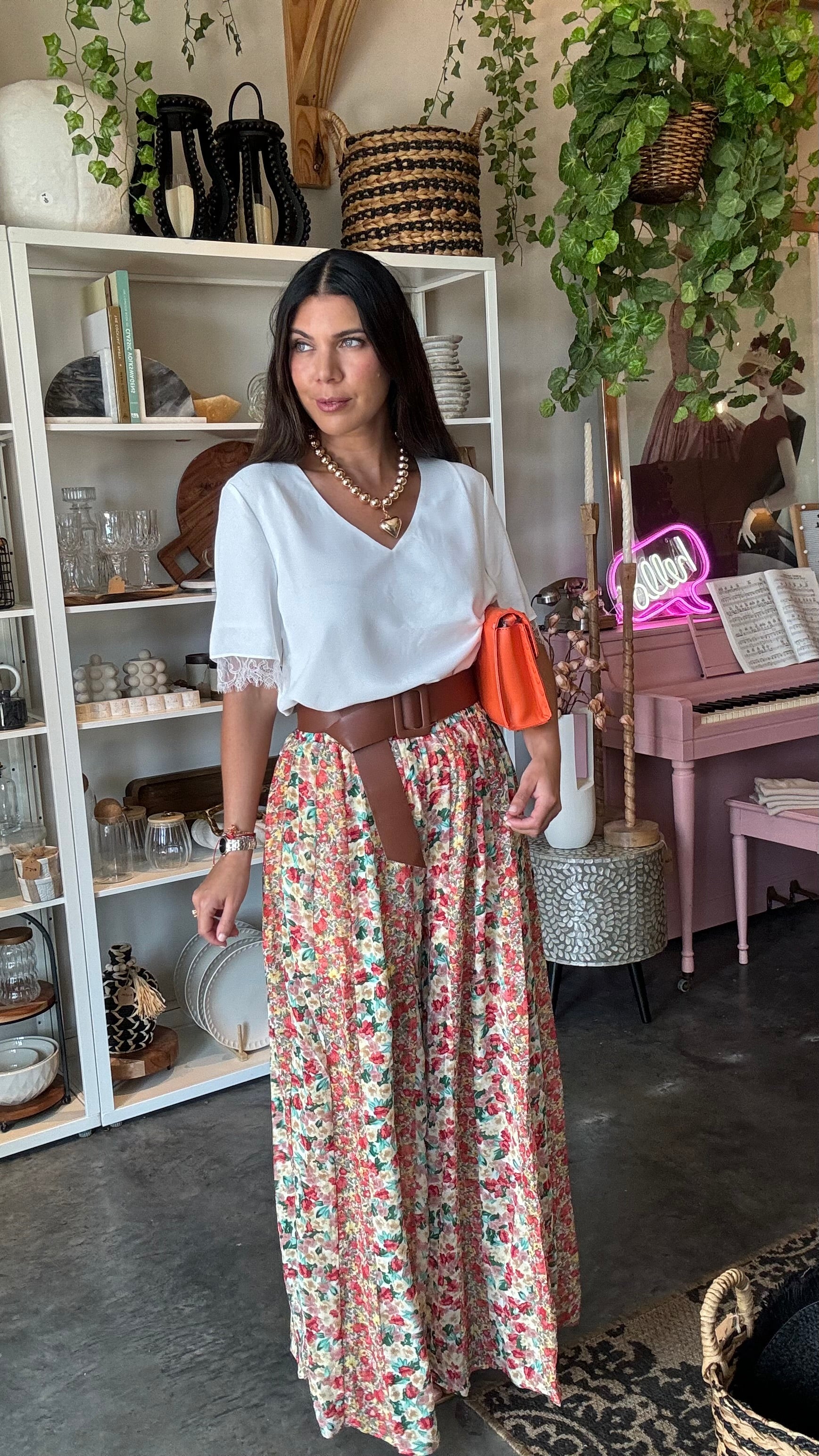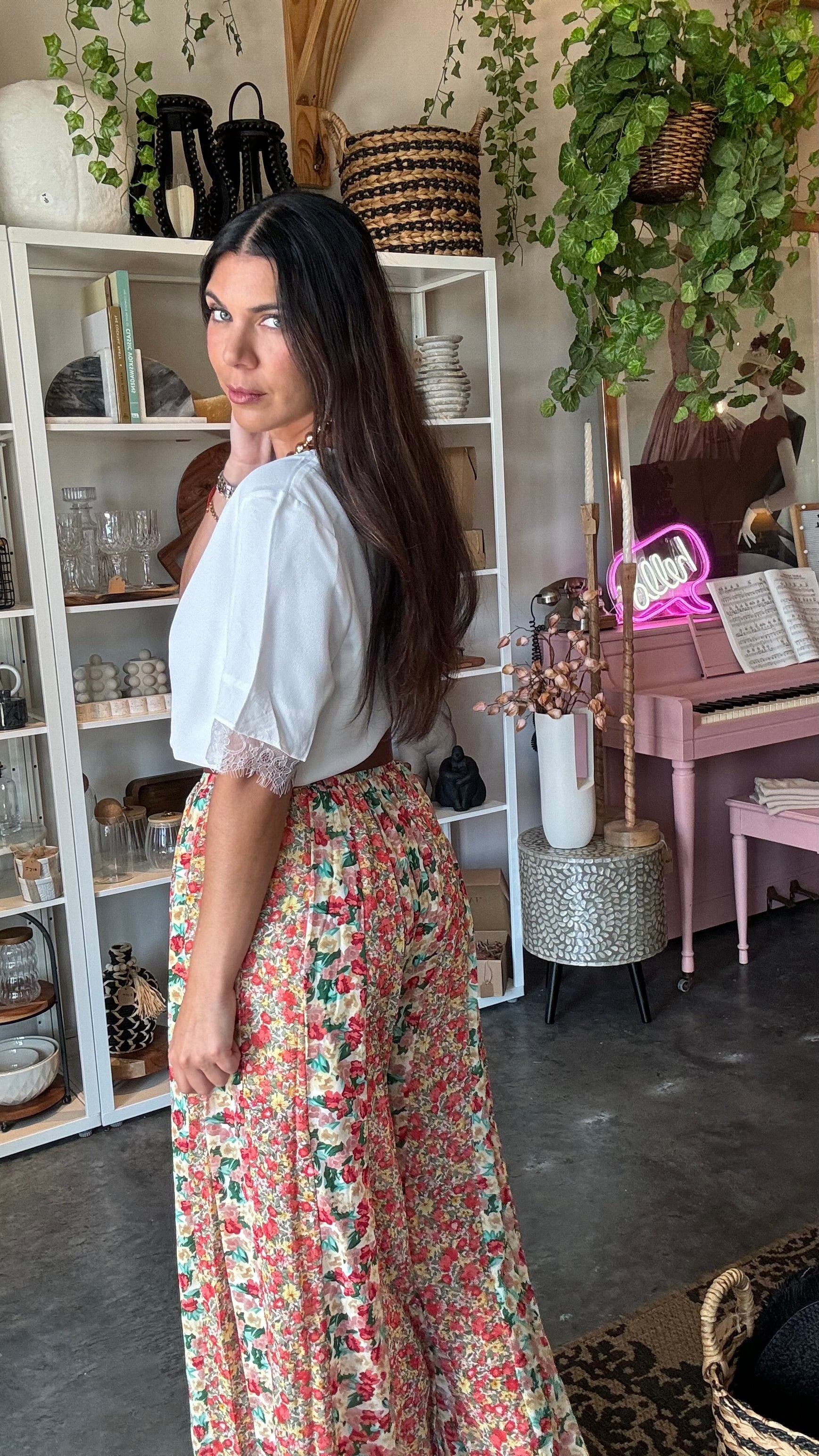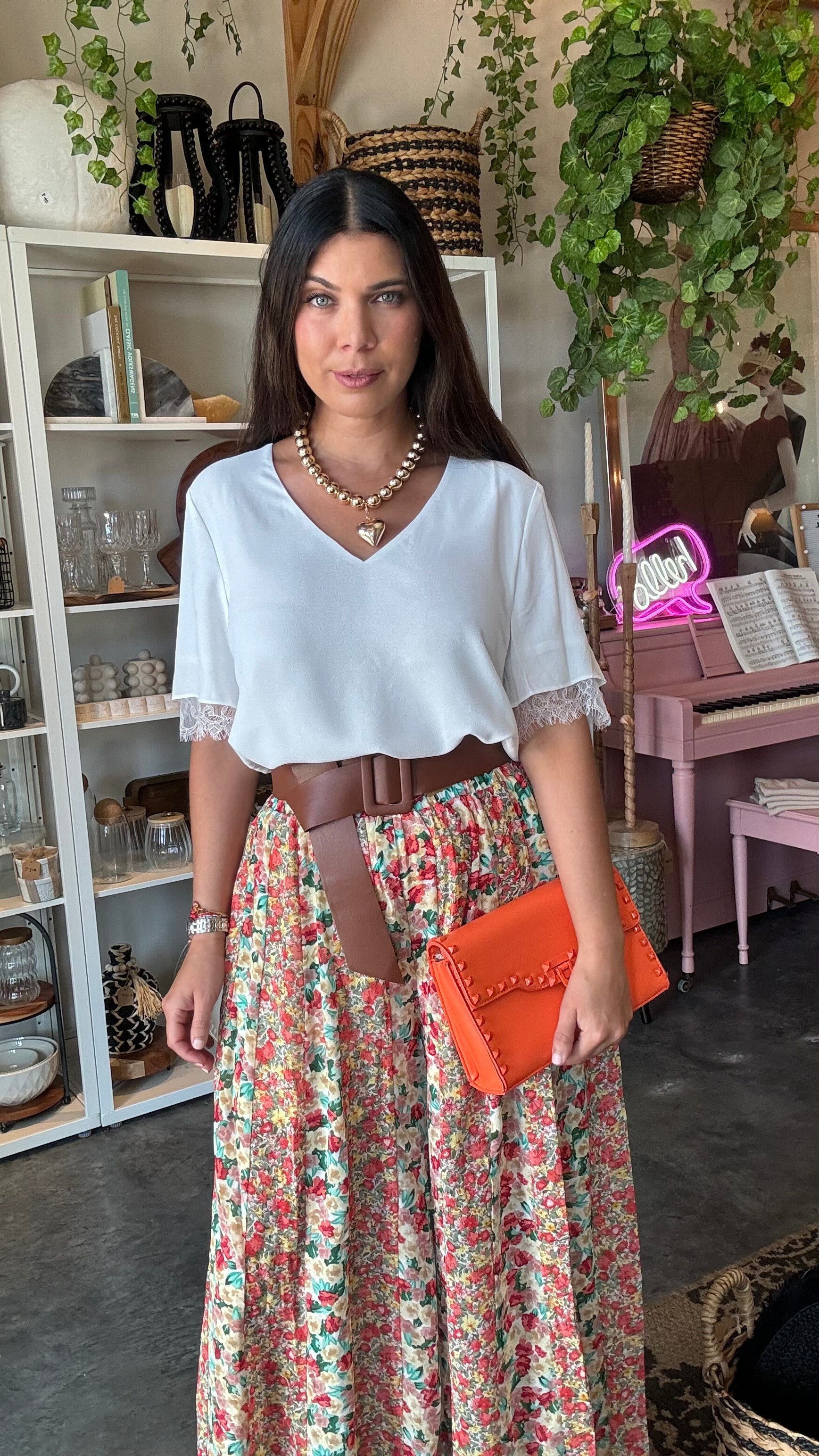 Villa V Neck Top Lace Detail- White